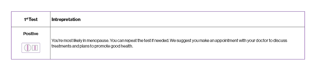 If you are still getting monthly periods, take the e.p.t. Menopause Test during the first week of your cycle between days 2 – 7. If your result is negative but you’re still having symptoms, take a second test 1 week later.